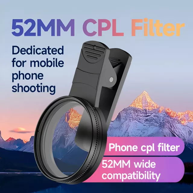 Crafted from high-quality aluminum alloy and premium glass, this filter combines durability with outstanding optical performance. With a 52mm diameter, it offers universal compatibility and comes with a convenient clip-on mount that fits most smartphones effortlessly. No tools, no fuss—just clip and shoot. Its lightweight and portable design means you can take it anywhere, making it perfect for travel, outdoor adventures, and everyday photography.