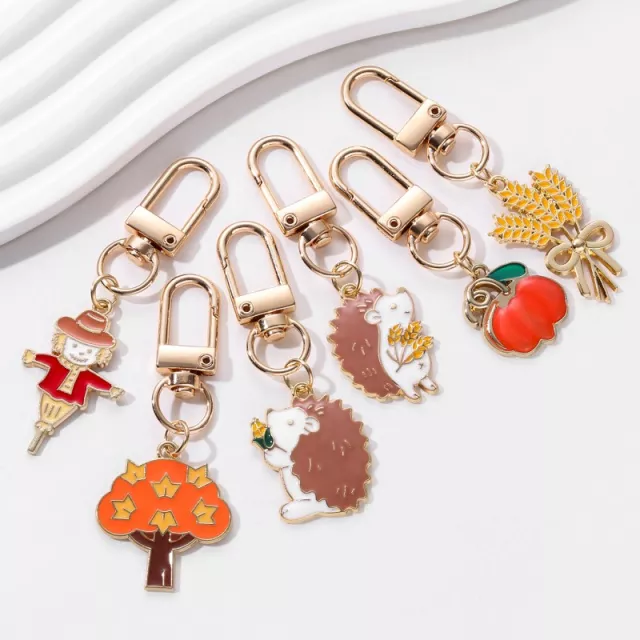 Featuring a sweet little hedgehog surrounded by pumpkins, wheat ears, and a festive scarecrow, this keychain is a symbol of abundance, gratitude, and happiness. Its lightweight design and durable car chain clip make it perfect for daily use, while the soft-toned autumn colors blend effortlessly with any outfit or accessory collection. Designed for both men and women, this unisex keychain fits any style and makes a heartwarming gift for friends, family, or yourself.