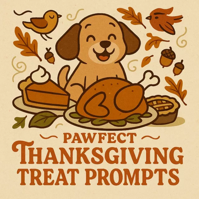 Make this Thanksgiving extra special with the Pawfect Thanksgiving Treat Prompts. Download your checklist today and start generating your own festive, AI-inspired pet treat recipes. Your furry friend will thank you with happy tail wags and purrs of approval!